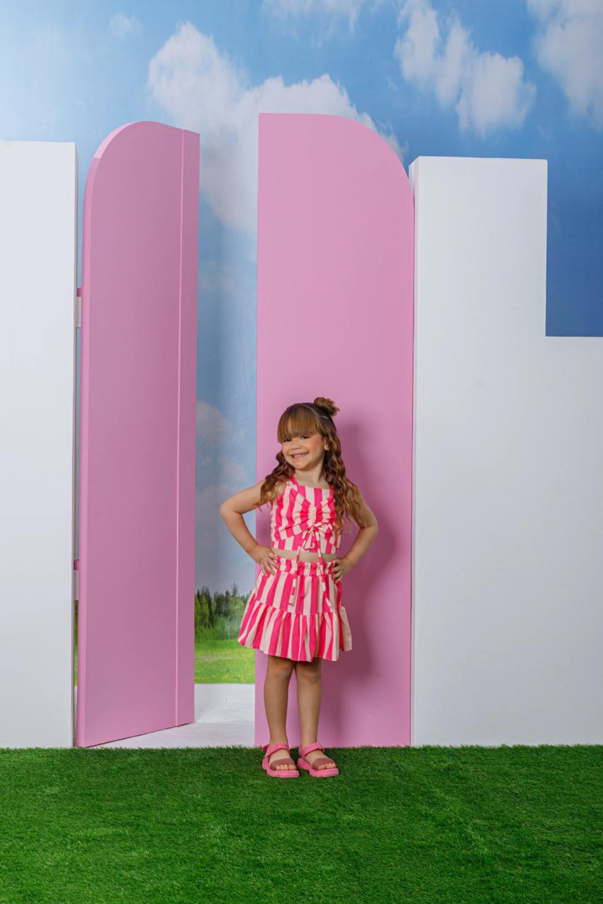 O Conjunto Infantil Listrado Petitana foi desenvolvido para oferecer conforto, leveza e muito estilo no dia a dia das crianças. Composto por blusa cropped e saia com babado, possui modelagem moderna e soltinha, garantindo liberdade de movimento e um caimento leve.